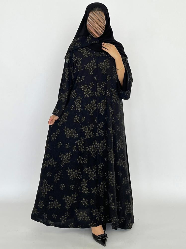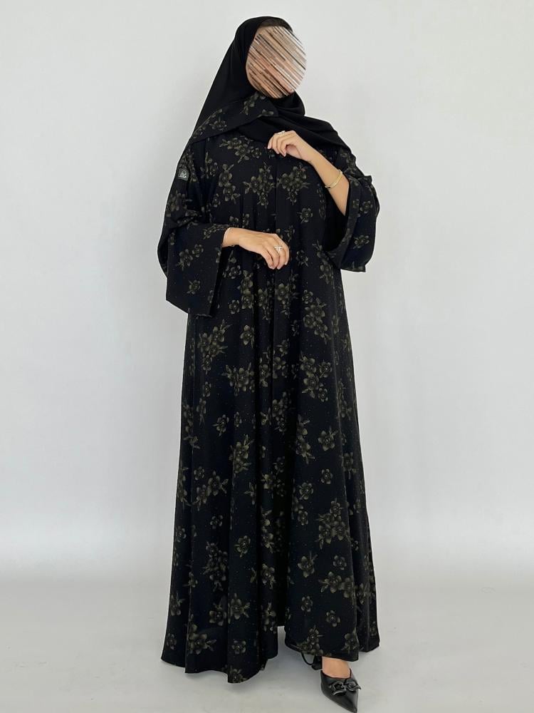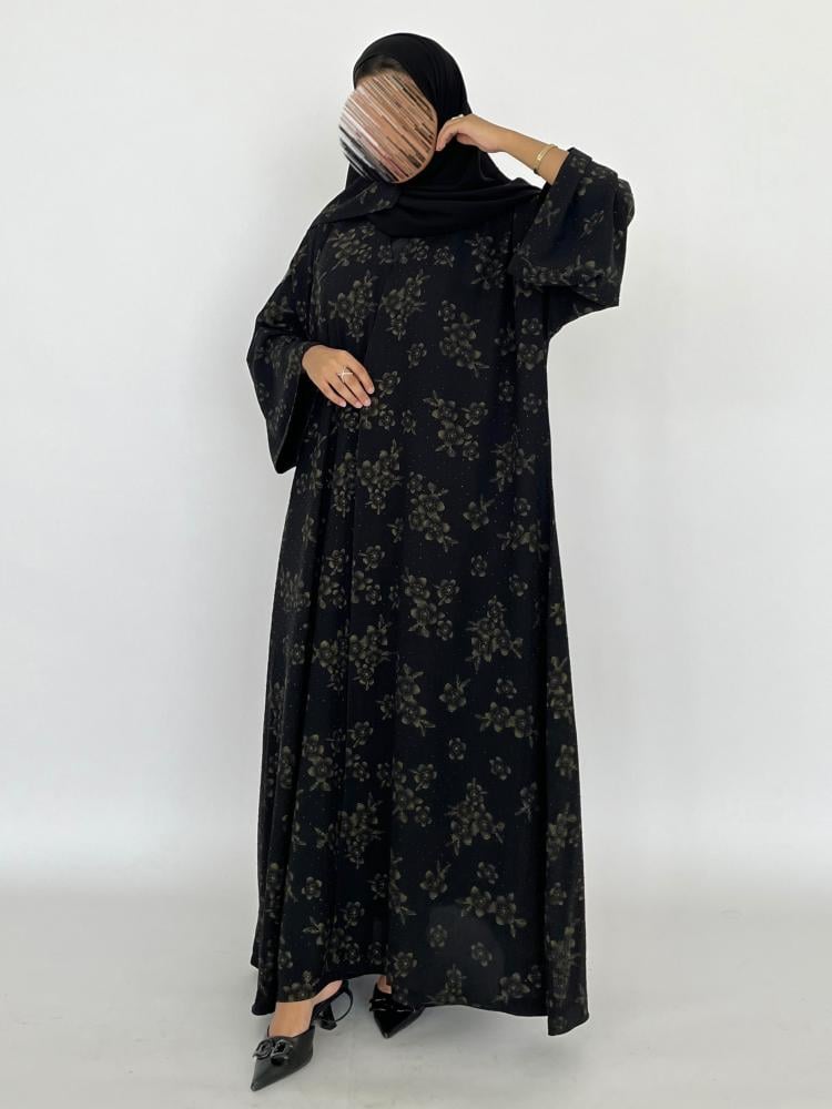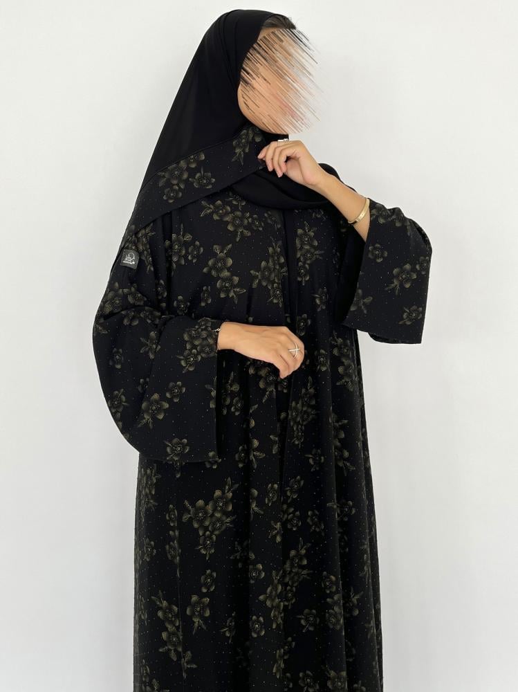 قماش العباية : شيفون مع فصوص اسود